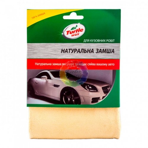 Turtle Wax  Натуральная  замша Салфетка 100% натуральной замши. Обладает отличными впитывающими свойствами. Выполнена из натурального материала особой прочности. Чрезвычайно долговечна. При использовании, не оставляет на поверхности разводов, волокон, подтеков. Не расслаивается. Устойчива к длительным механическим воздействиям и влиянию агрессивной среды. Благодаря особой пластичности, не повреждает стеклянные и хромированные элементы.
