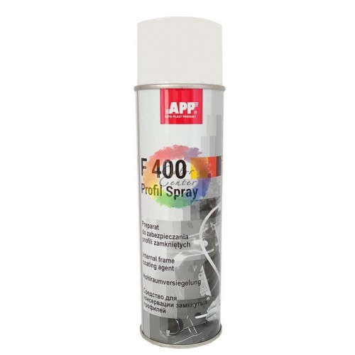 APP-Profil F400 - засіб захисту закритих профілів прозорий 0.5 л. Виготовлений на базі воску зі спеціальними просочення для антикорозійного захисту замкнутих профілів і важкодоступних місць кузова. Має сильні проникні та водовідштовхувальні властивості. Простий у використанні, застосовується при виконанні дрібного ремонту та антикорозійного захисту при фарбувально-кузовних роботах.